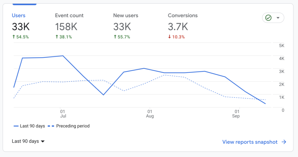 March 1 - Sept 12 2023 (Since conversion to GA4)